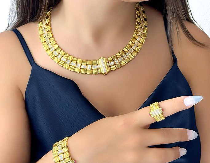 Tasarım ekibimiz, ilhamını hem geleneksel mücevher kültüründen hem de çağdaş estetikten alarak özgün koleksiyonlar oluşturur. 14K, 18K ve 22K altın başta olmak üzere sertifikalı değerli taşlar ve yüksek kalite alaşımlar kullanır; her ürünü uluslararası standartlara uygun olarak üretir ve kalite kontrolden geçiririz. Müşterilerimizin taleplerine özel kişiselleştirme ve kurumsal üretim hizmetleri sunarak, markaların ve bireysel tasarımcıların koleksiyonlarına çözüm ortağı oluruz.